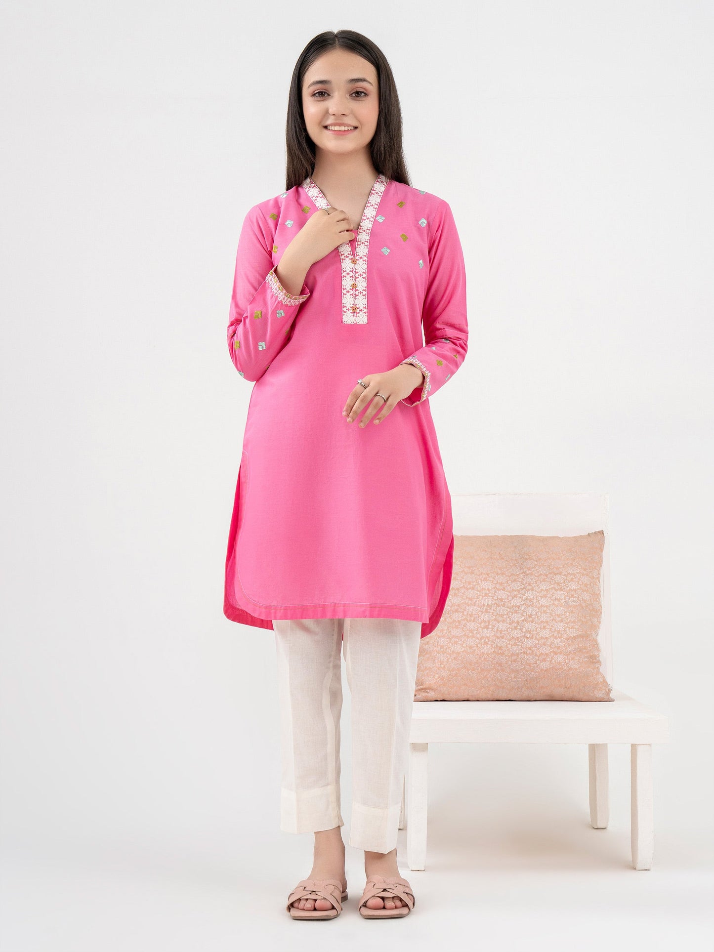 Wash light and bright colors separately. Do not bleach. Do not twist/wring, warm iron to sequined, beaded, and delicate fabrics. Do not dry in direct sunlight.
