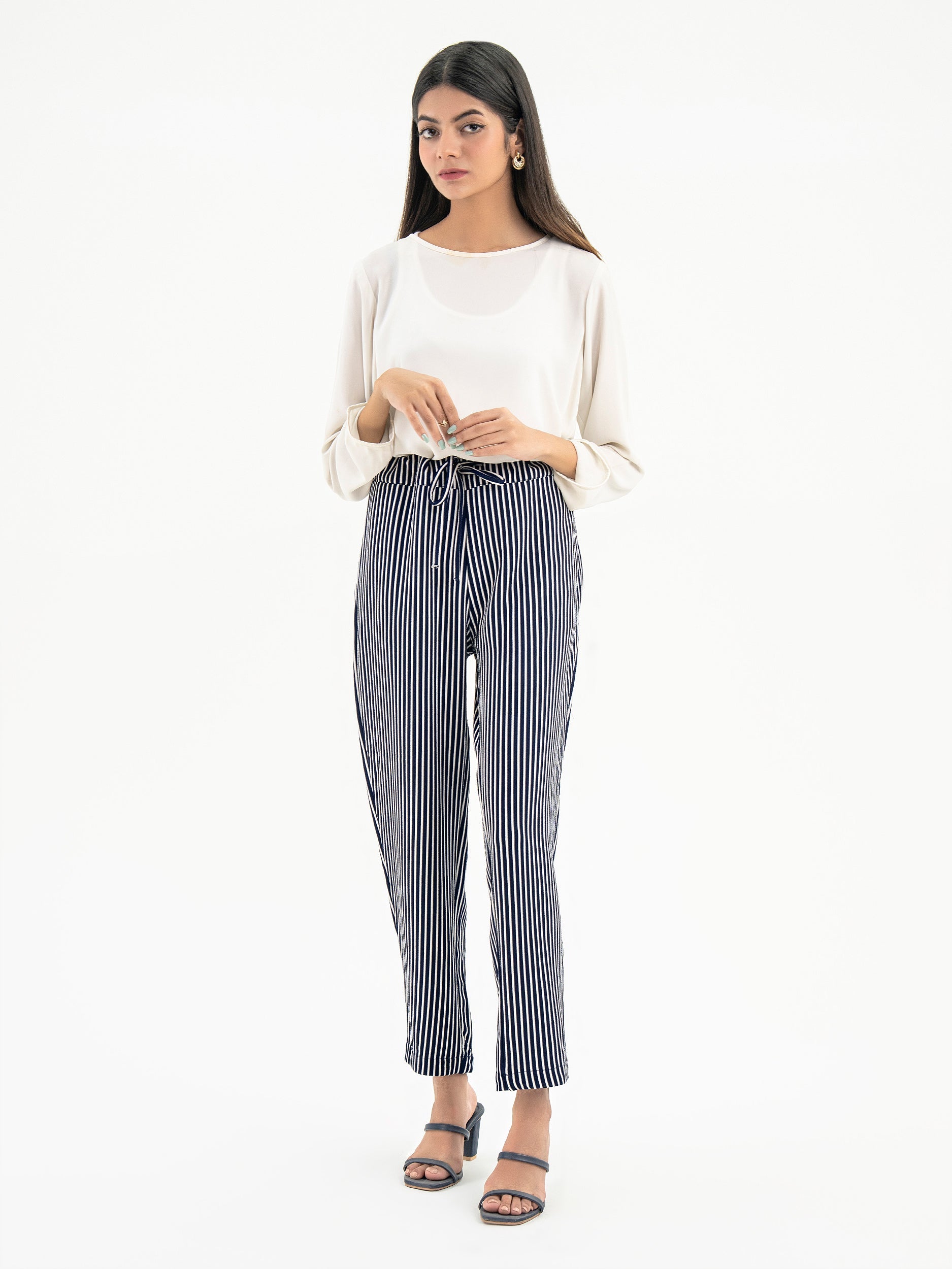 - Stripe printed narrow leg pants