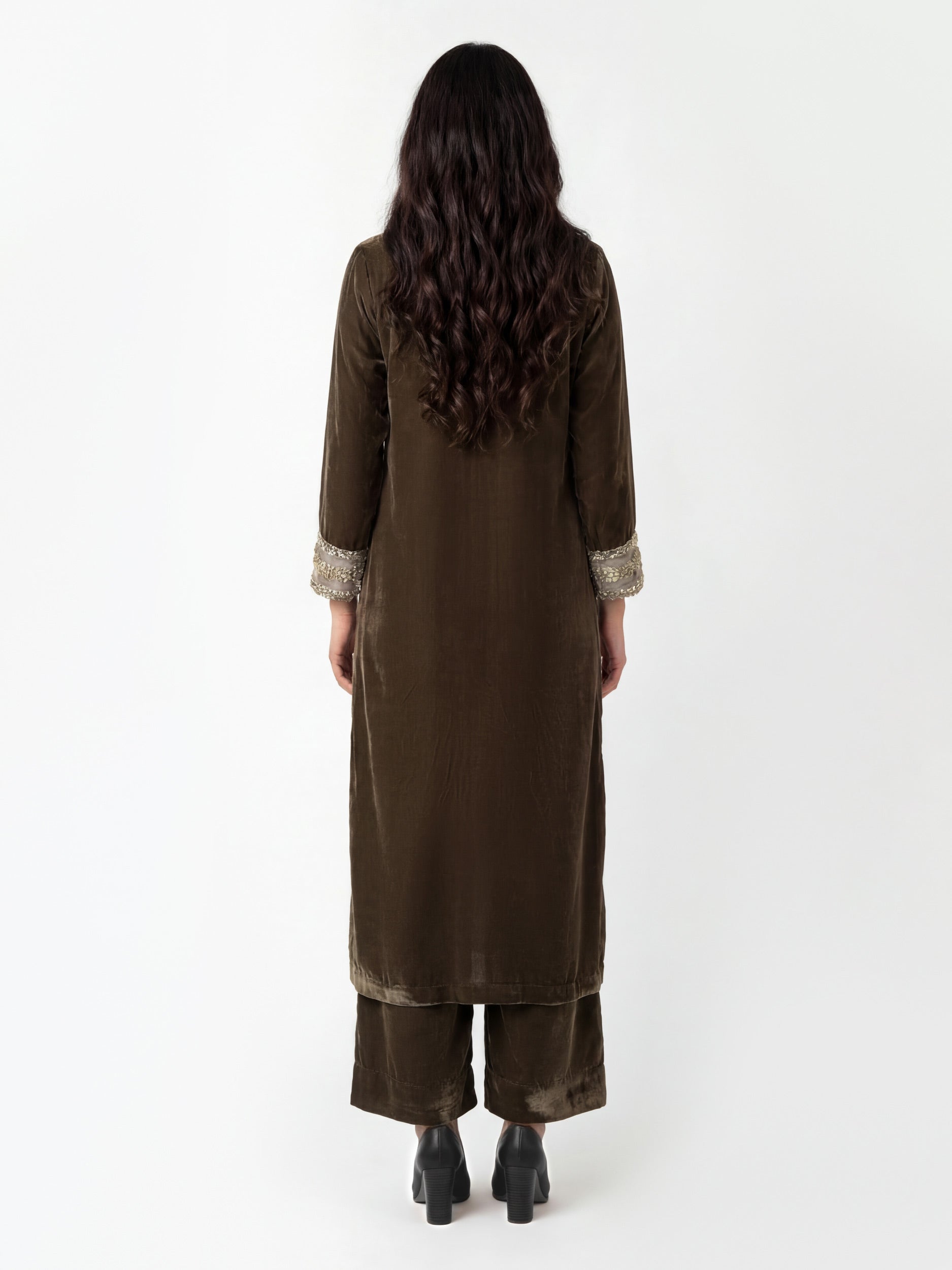 2 Piece Velvet Suit- Embroidered (Pret)