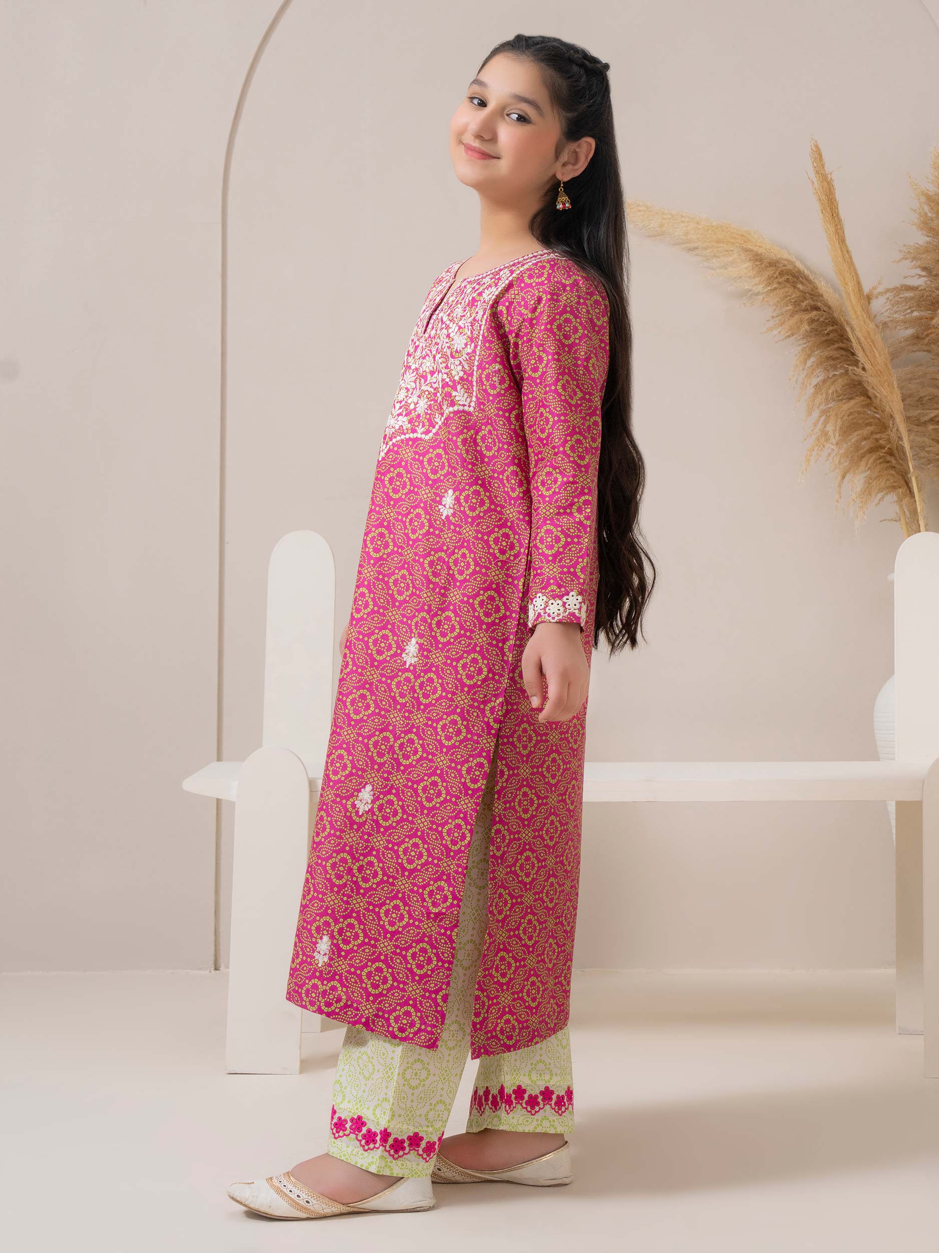 - Printed embroidered wide-leg trouser with elasticized waistband