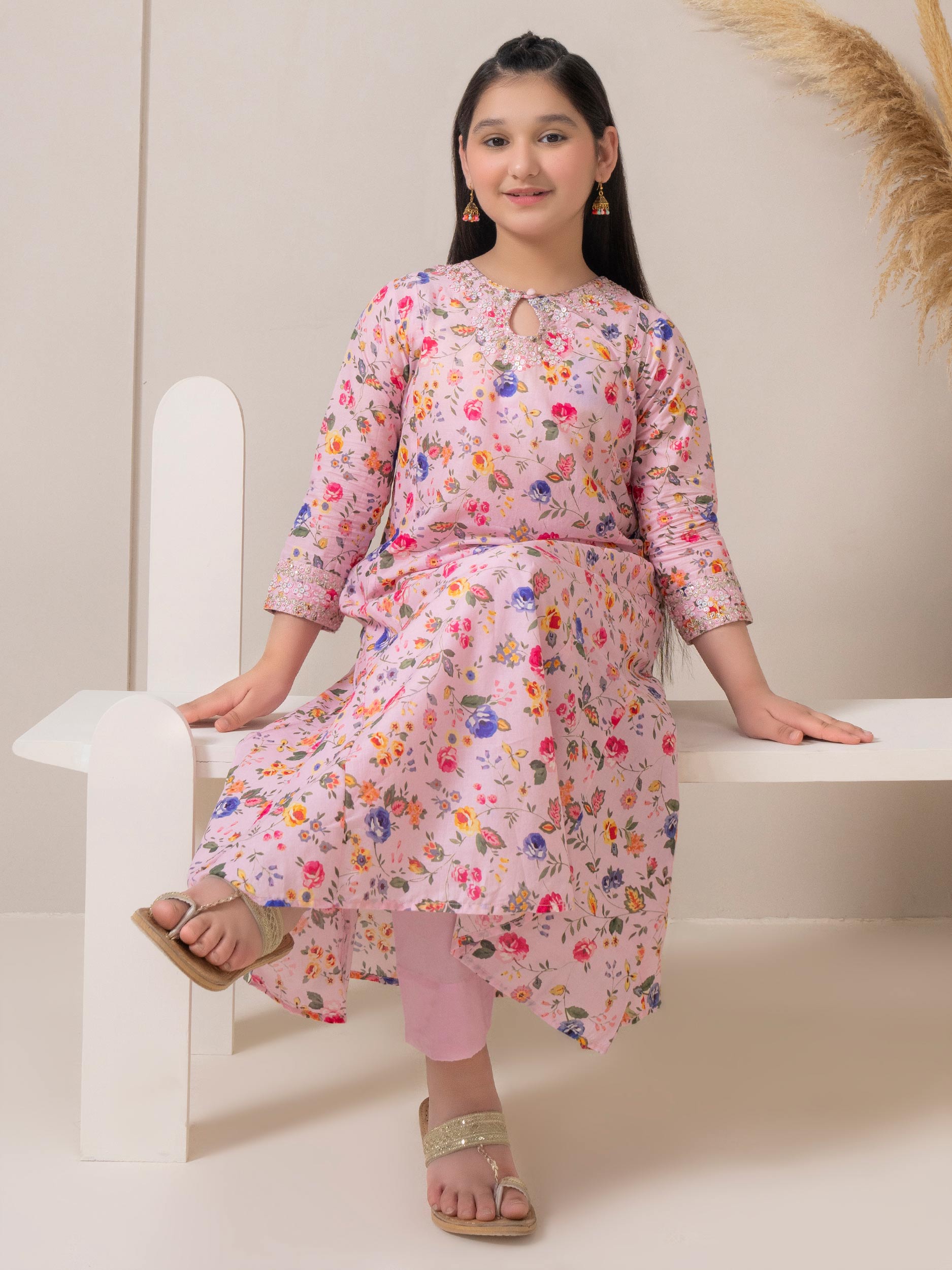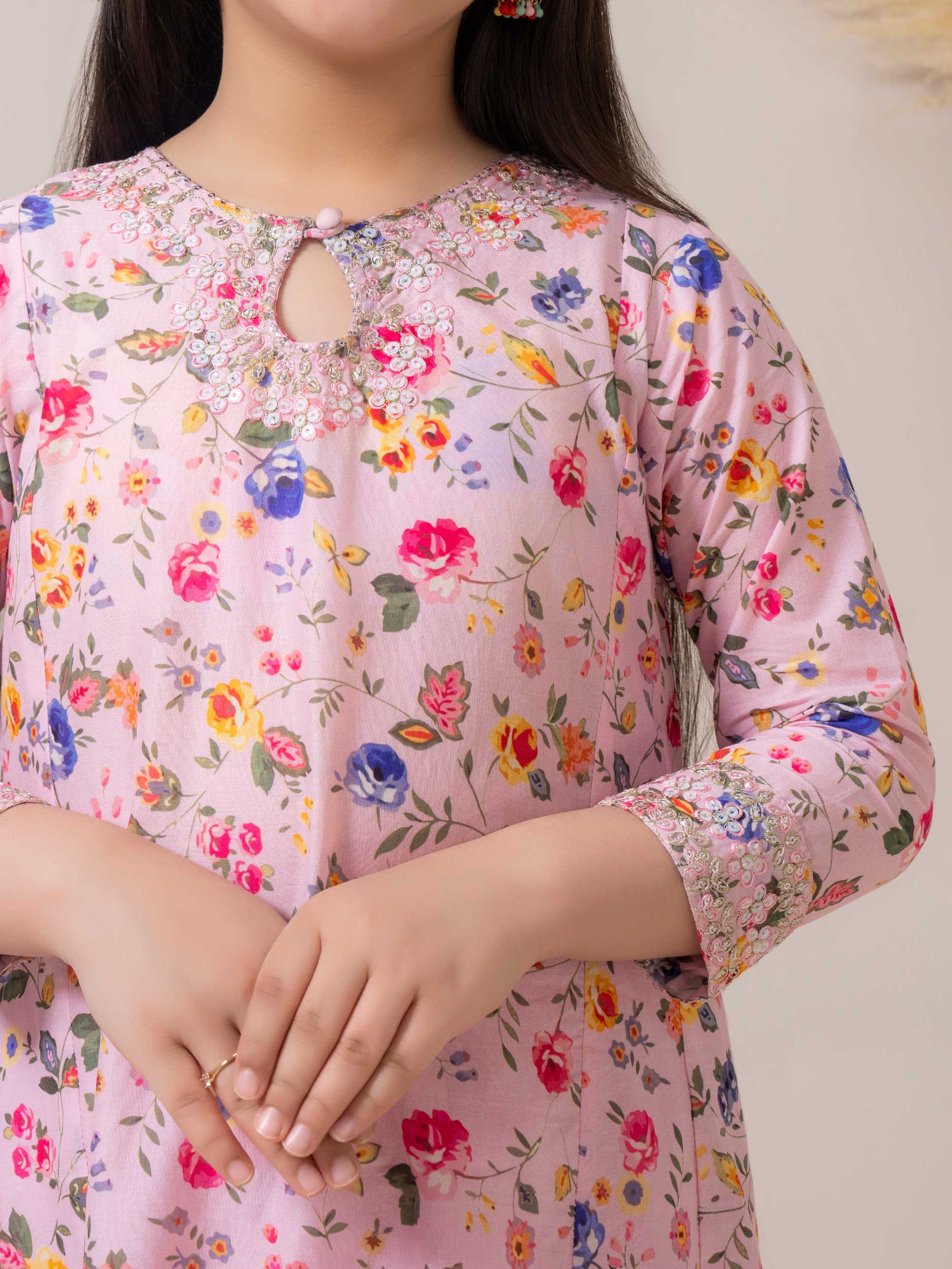 - Printed embroidered shirt with tilla & sequins embroidery on the