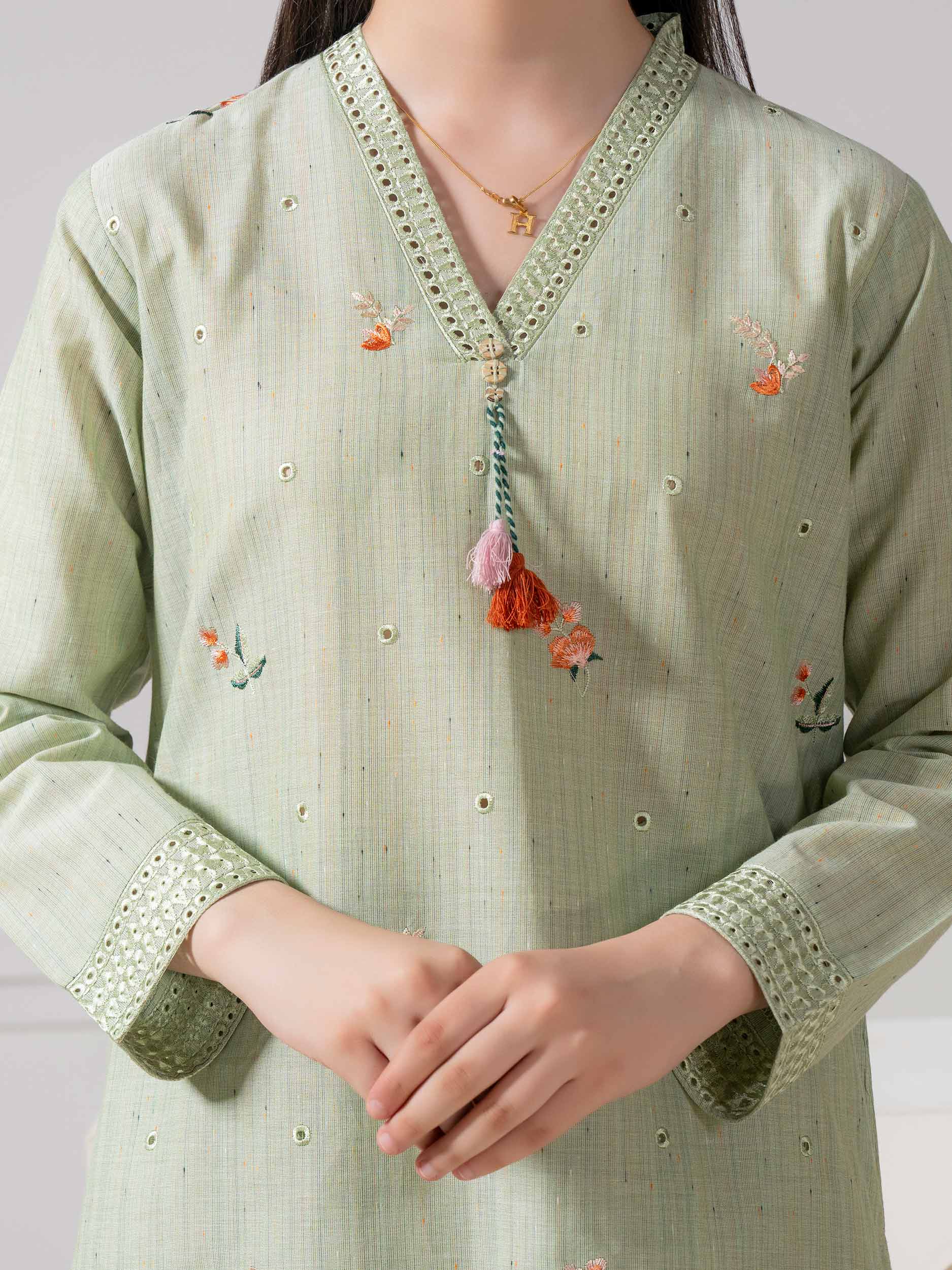 Wash light and bright colors separately. Do not bleach. Do not twist/wring, warm iron to sequined, beaded, and delicate fabrics. Do not dry in direct sunlight.