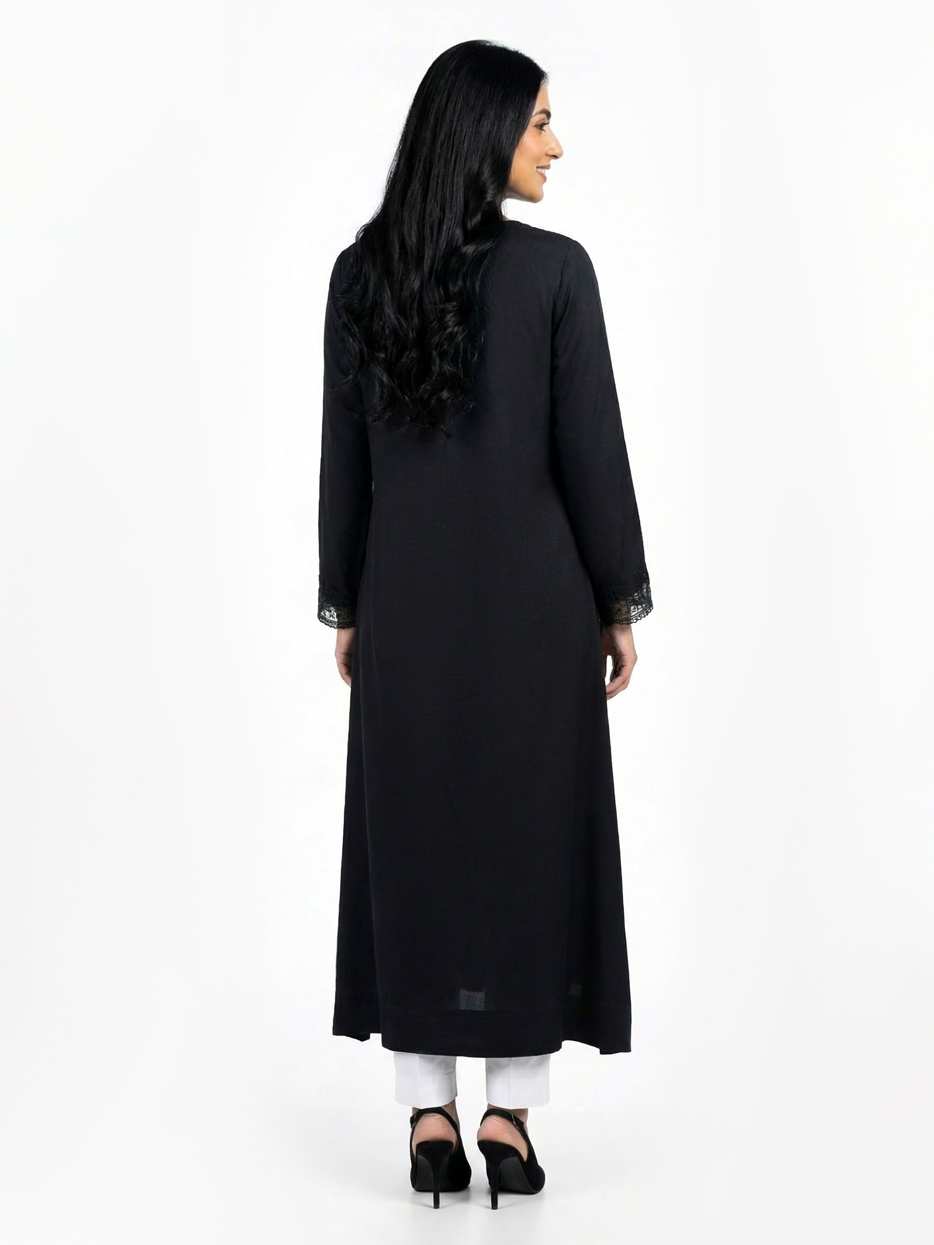 - neckline and embroidered sleeve hems