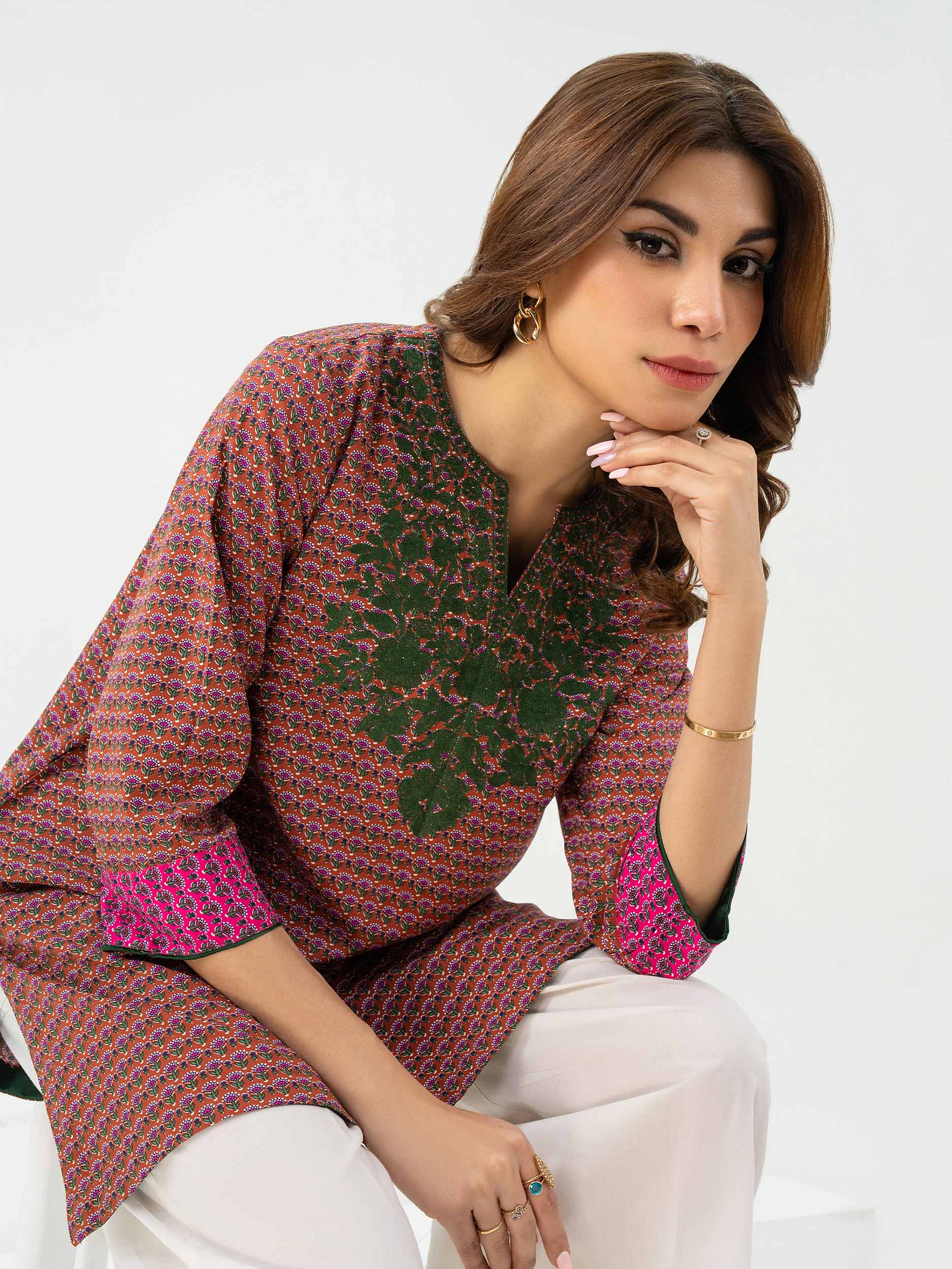 - Printed embroidered top