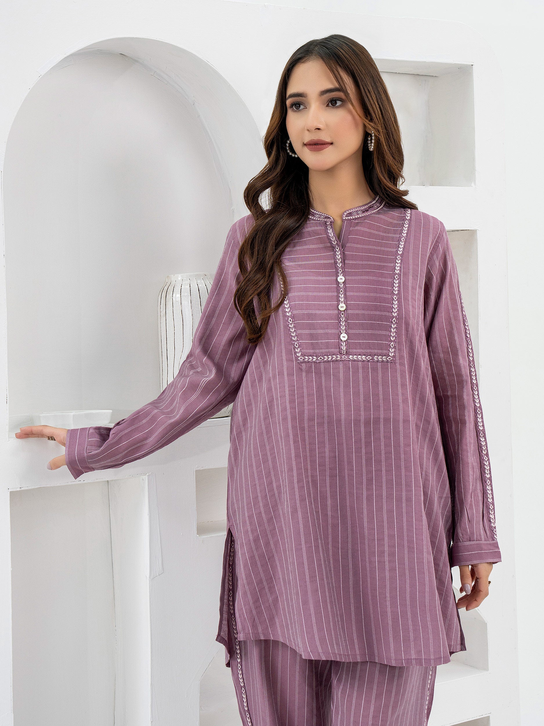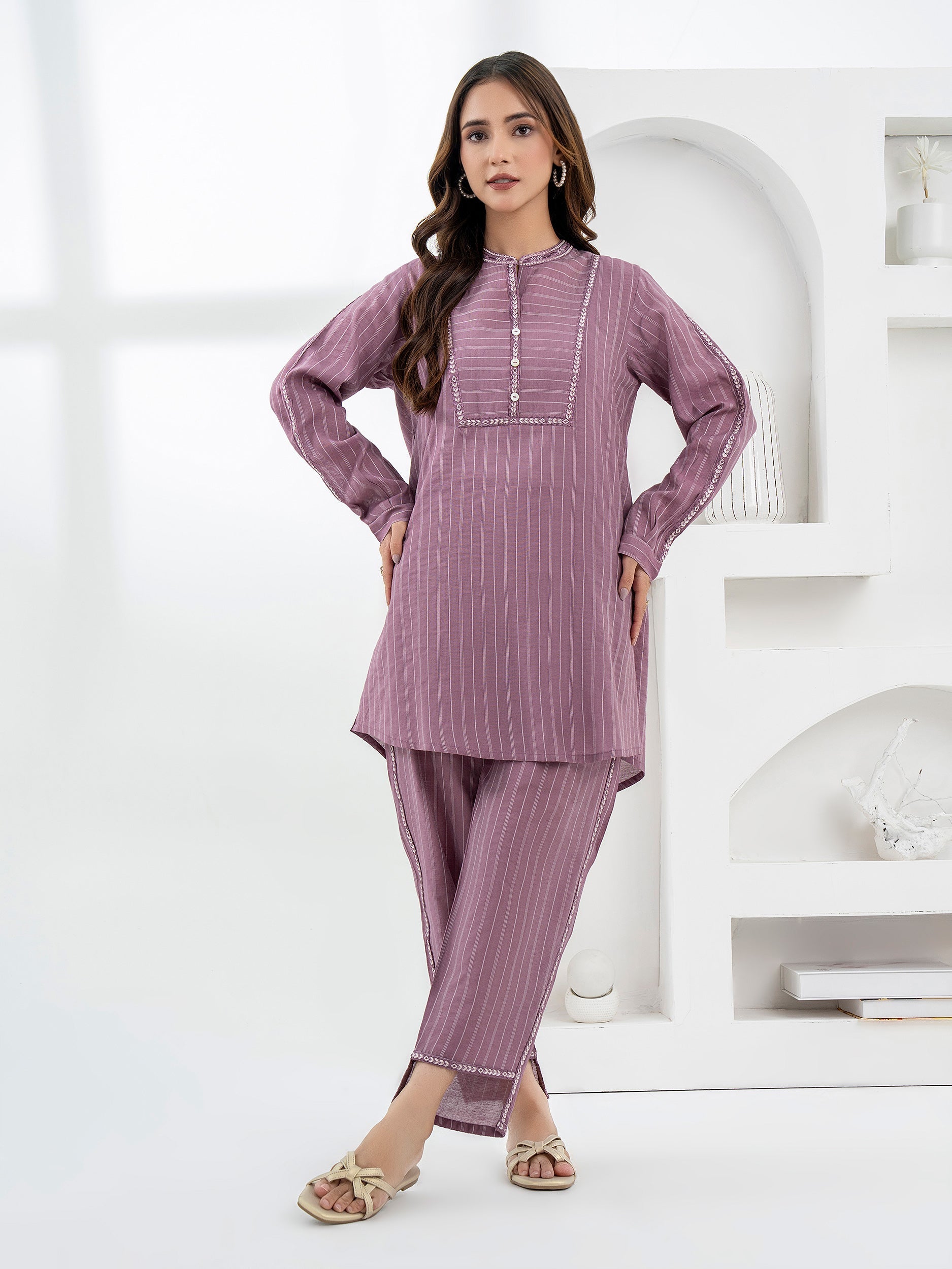 2 Piece Yarn Dyed Suit-Embroidered (Pret)