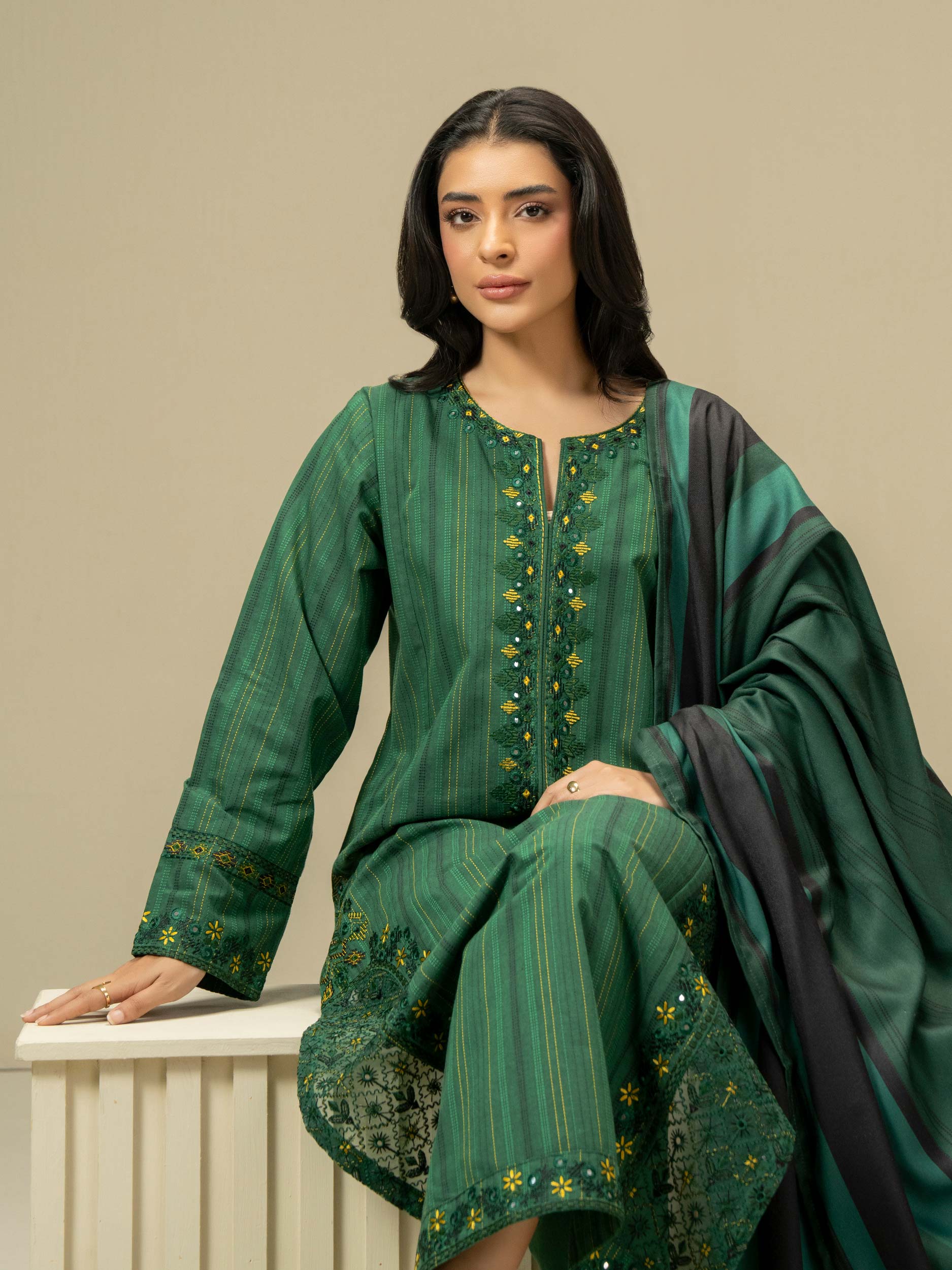 3 Piece Yarn Dyed Suit-Embroidered (Pret)
