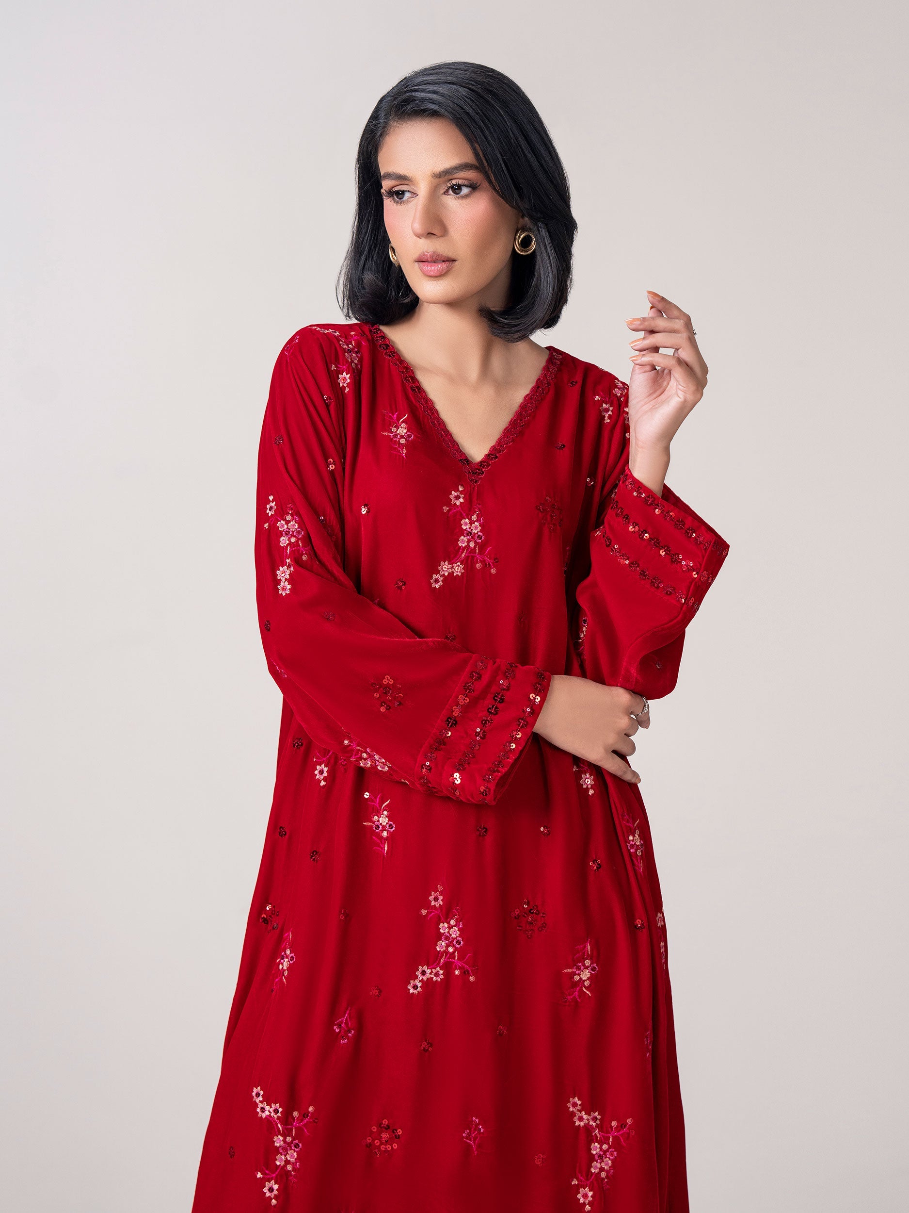 2 Piece Velvet Suit- Embroidered (Pret)