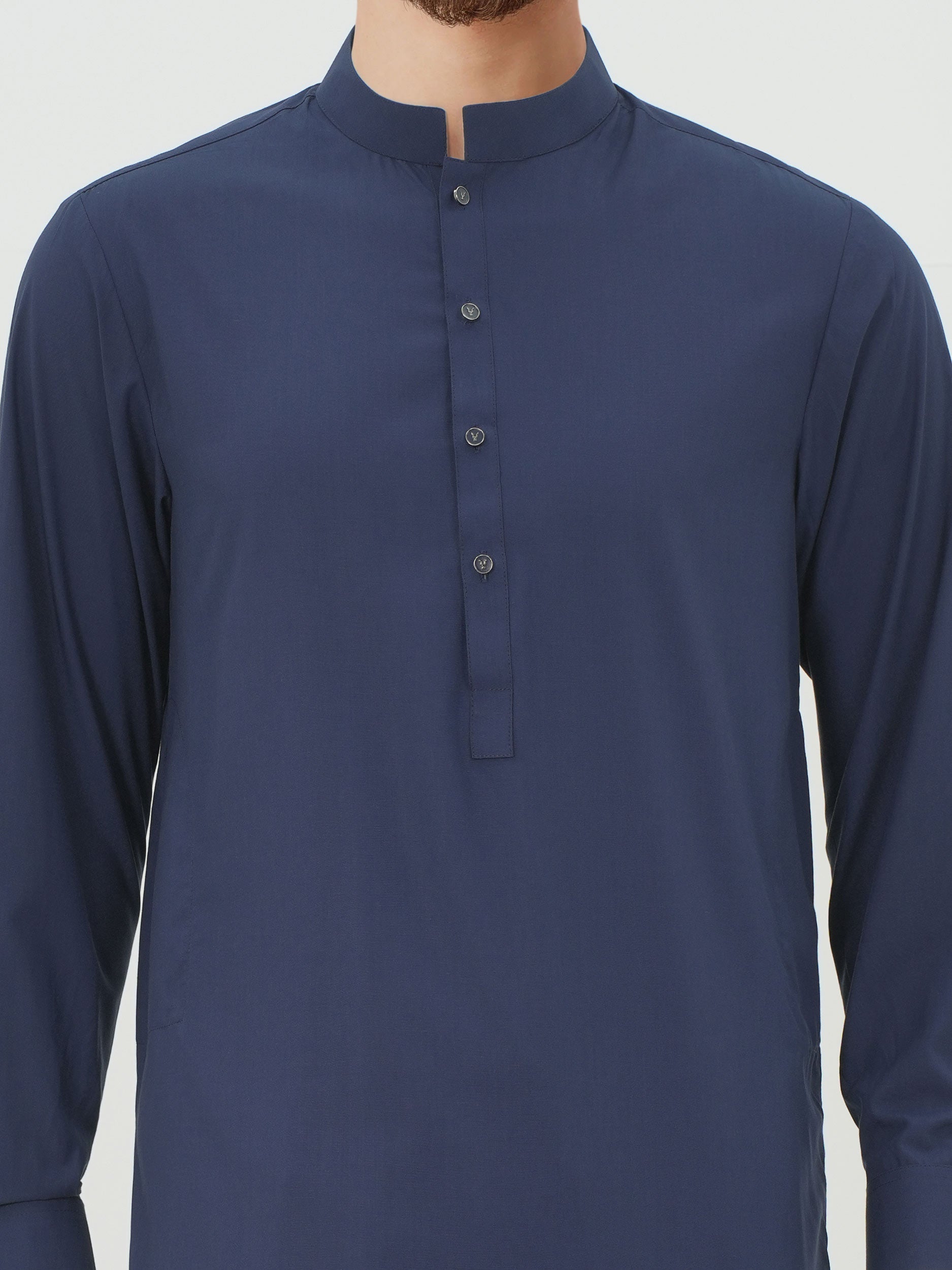 Straight-cut kurta with a full cuffed sleeves, and two side pockets.