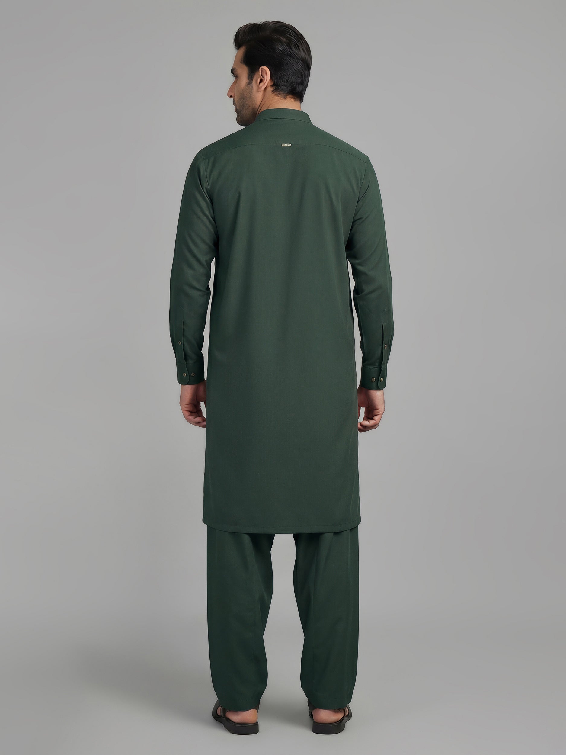 Straight-cut kurta with a full cuffed sleeves, and two side pockets.