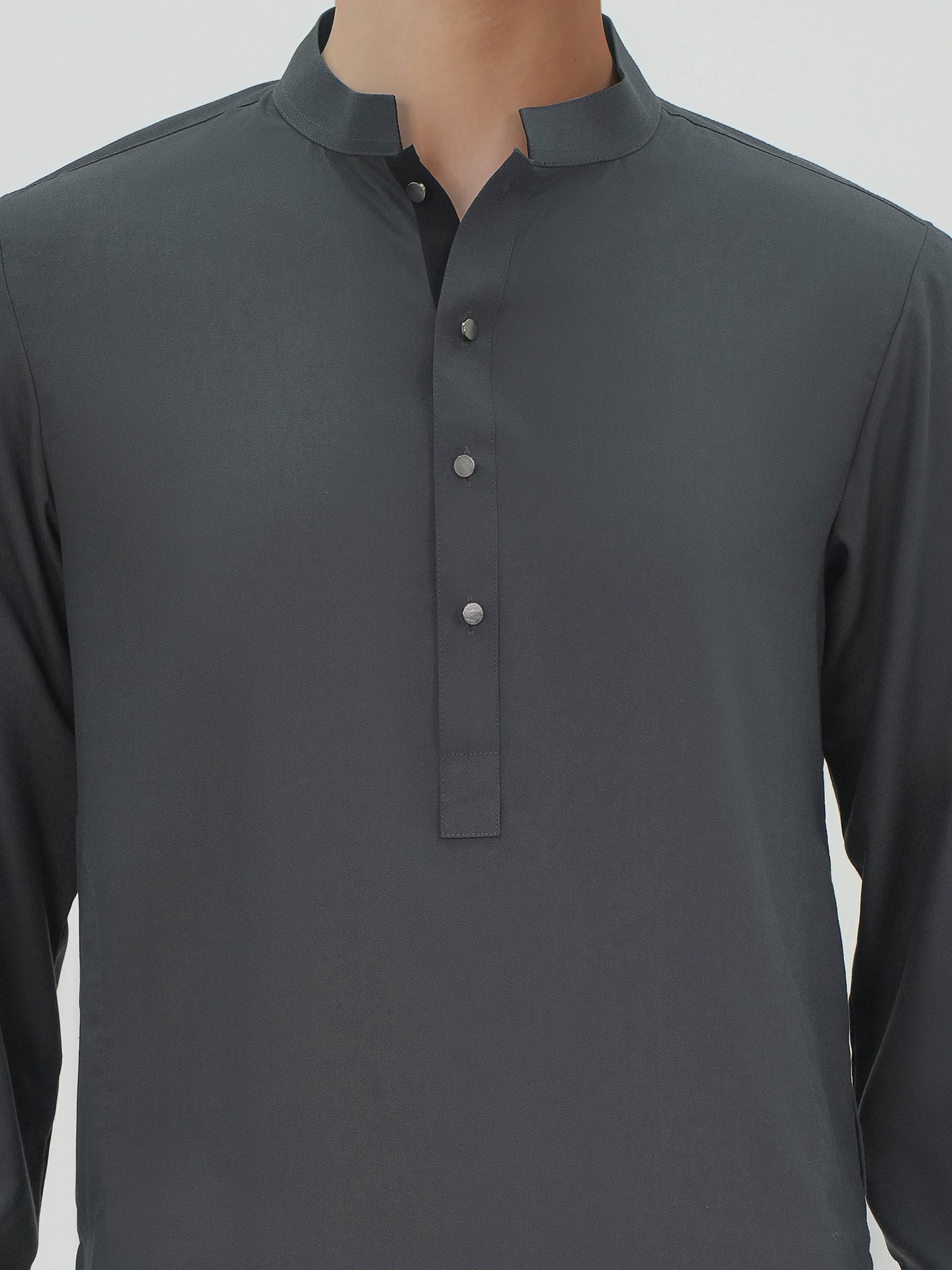 Straight-cut kurta with a button detailed placket, full cuffed sleeves, and two side pockets.