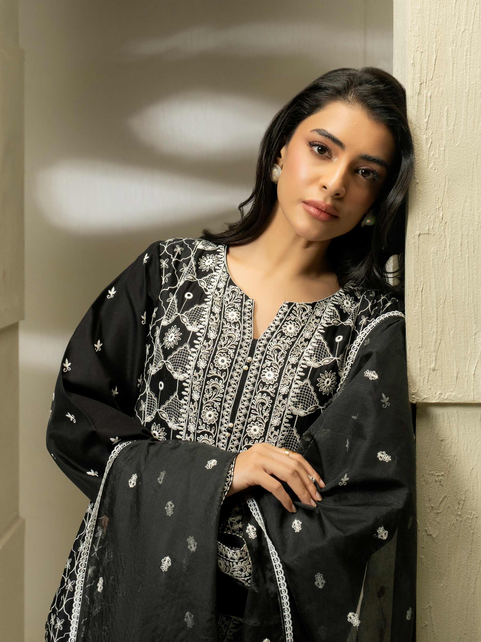 3 Piece Satin Suit-Embroidered (Pret)