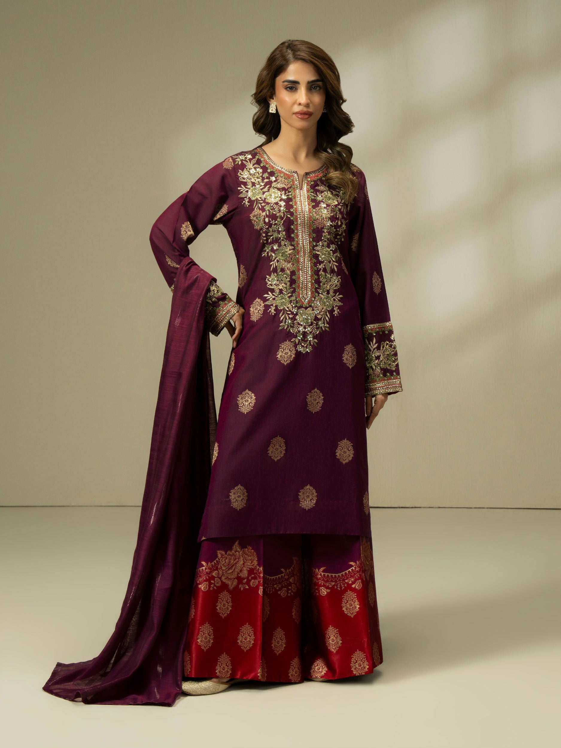 3 Piece Jacquard Suit-Embroidered (Pret)