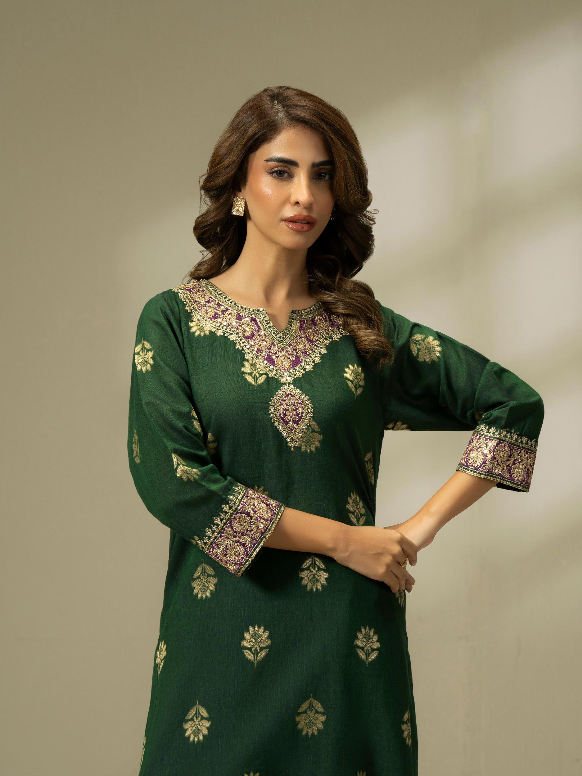2 Piece Jacquard Suit-Embroidered (Pret)