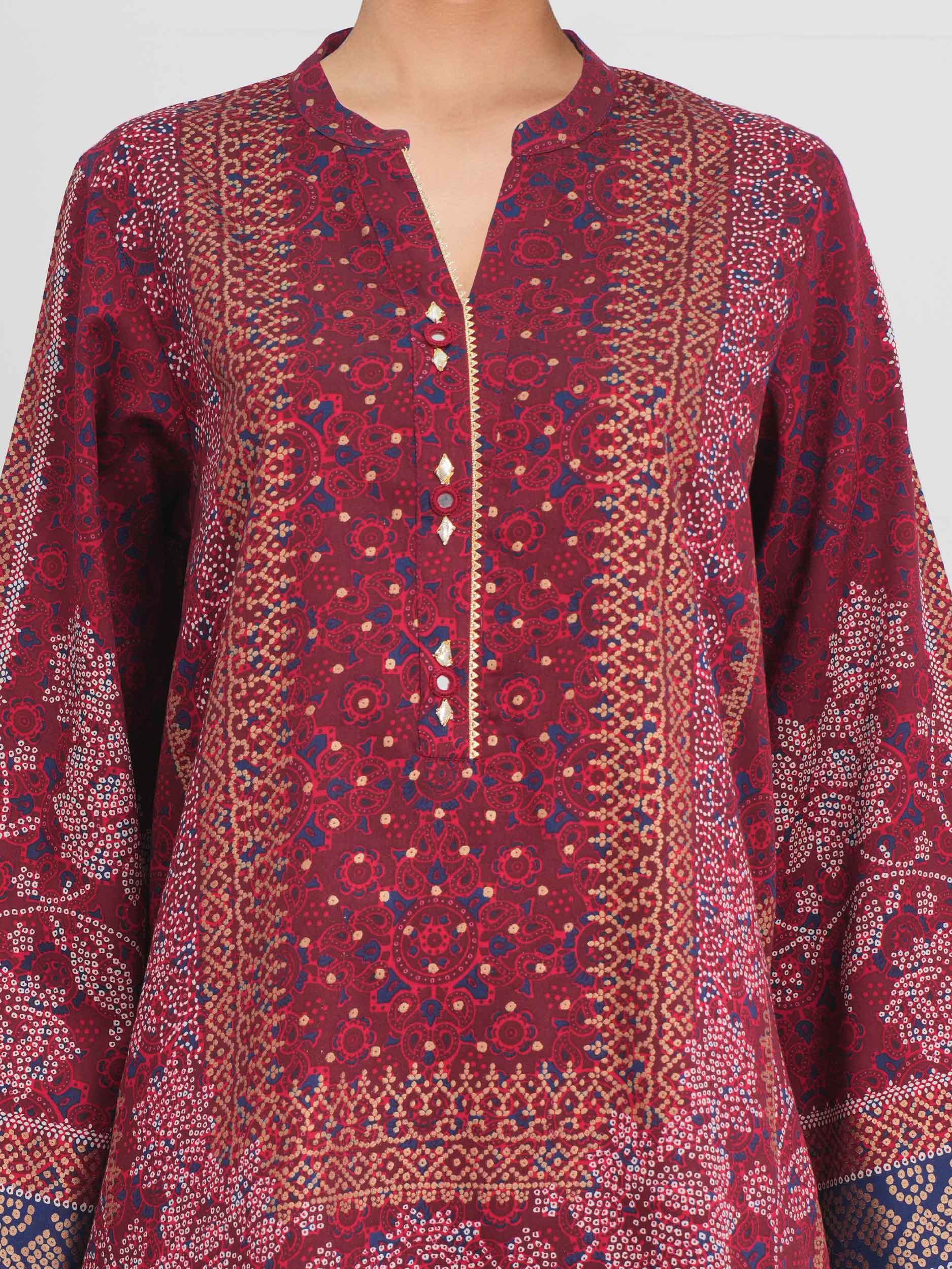 Chunri printed straight-cut shirt with a band collar and front button placket
