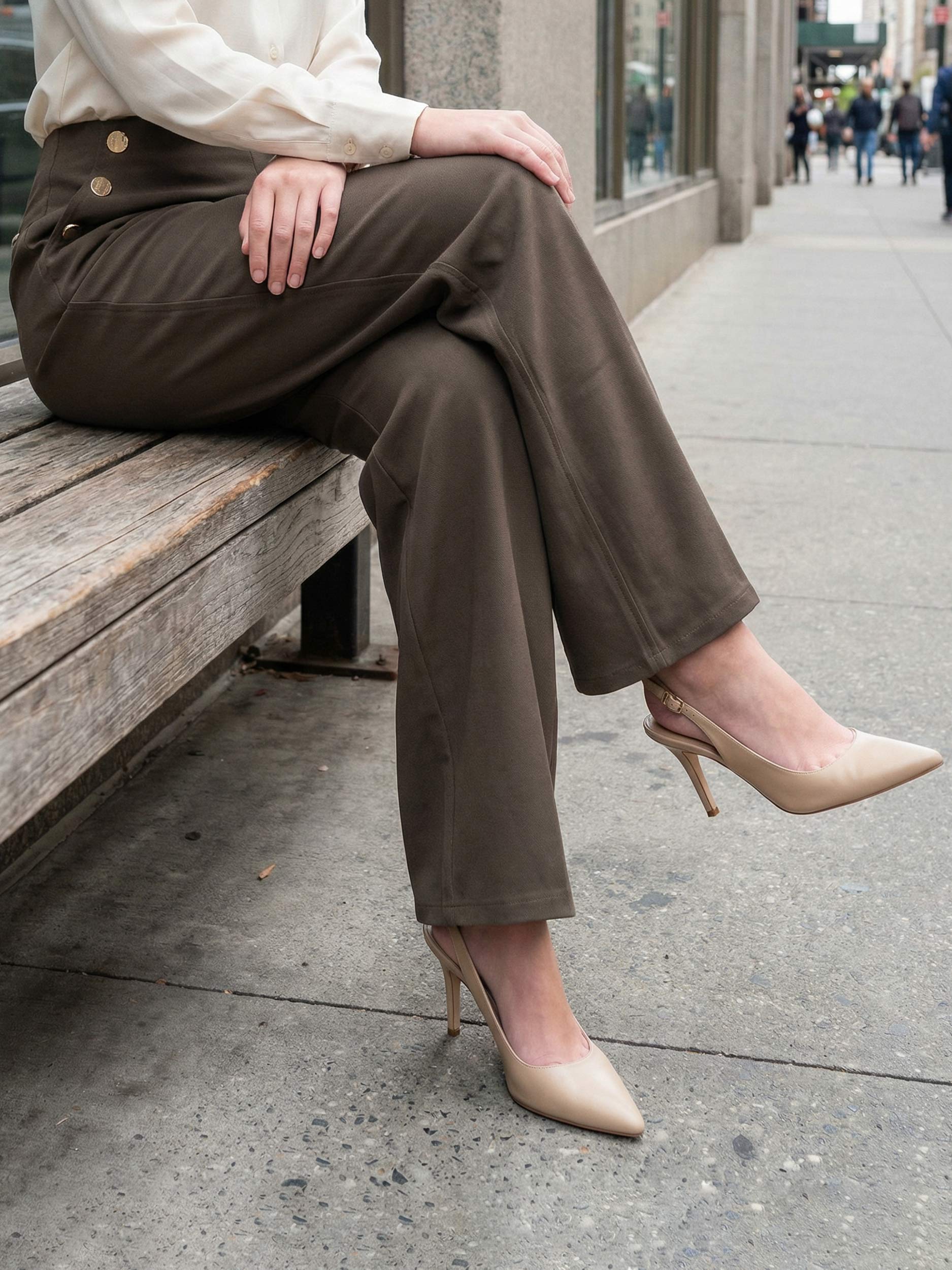 - High-waisted relaxed-fit formal pants with side button detailing
