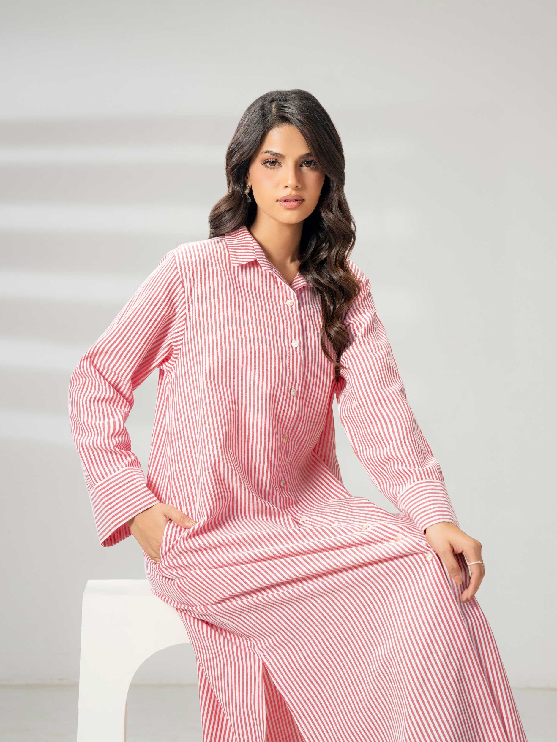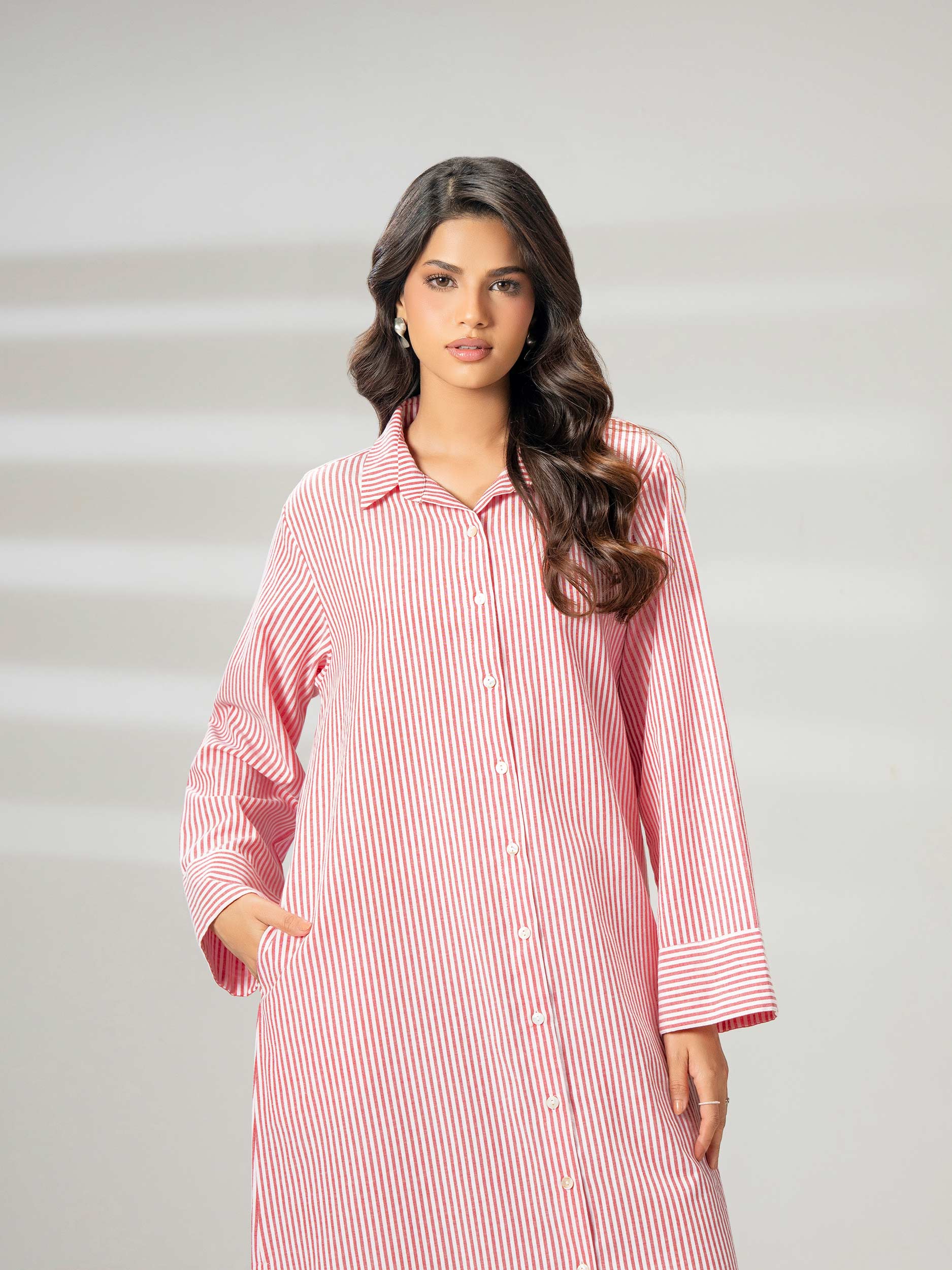 - Stripe printed button down dress