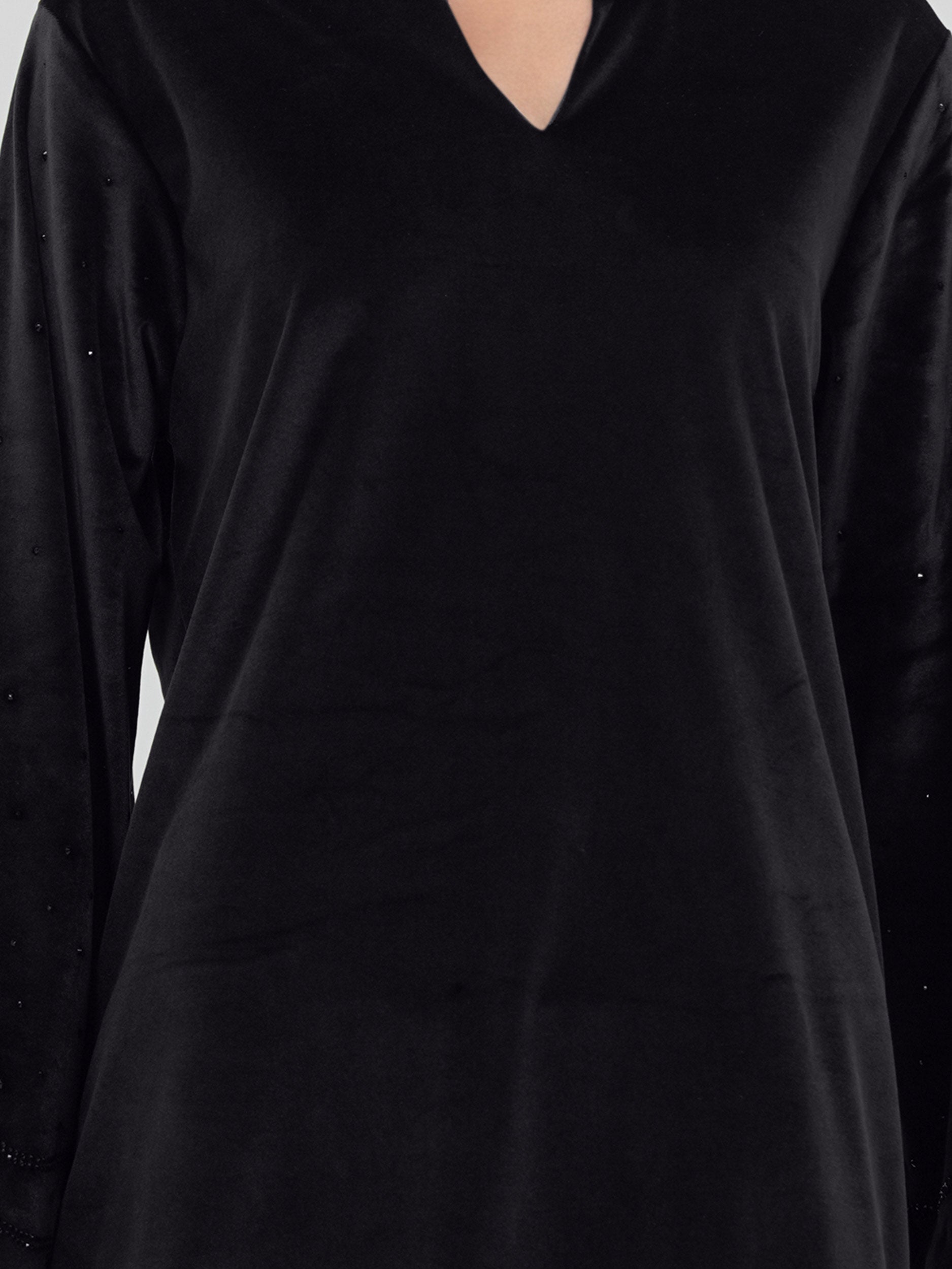 - Relaxed-fit top with round neckline and stone-embellished sleeves